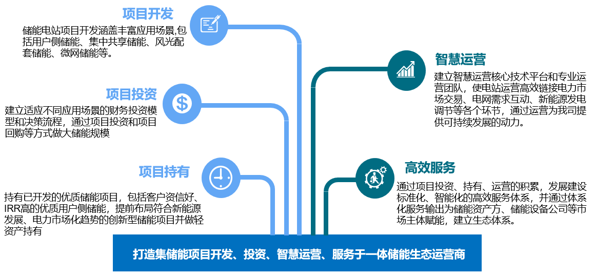 作为推动能源革命的核心技术和各国能源转型必争的技术高地,储能不仅是一个技术含量高、增长潜力巨大的新兴产业,更是建设清洁低碳安全高效现代能源体系和构建新型电力系统的关键支撑,关乎“双碳”目标如期实现。在此背景下,SBOBET利记官网凭借强大的融资能力、专业的团队运营经验以及与电网资源及储能核心部件供应商的良好合作等,打造一个集项目开发、投资、持有、运营、服务于一体的储能生态运营服务平台。