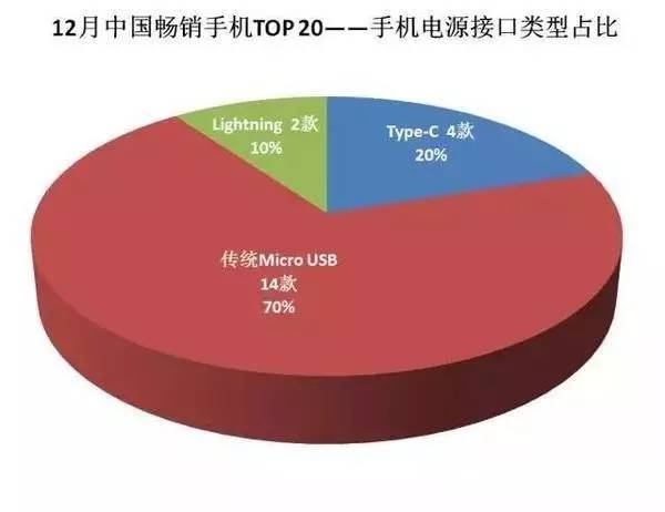 手机电源接口正在悄然变化,Type-c接口在12月中国畅销手机TOP 20占比已达20%。