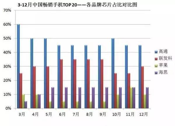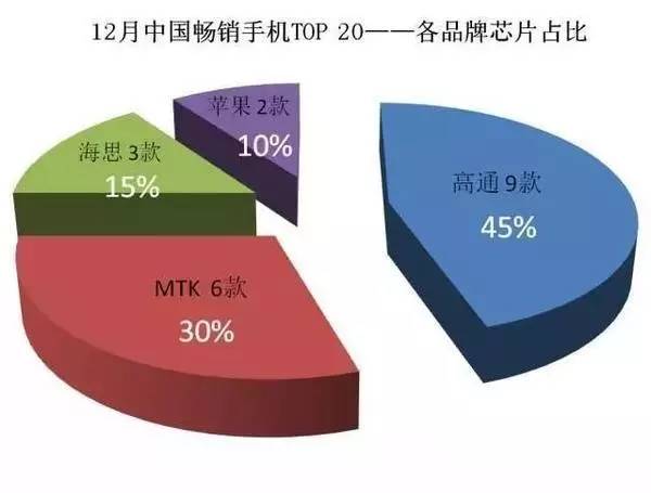 12月中国畅销手机TOP 20中,由于千元机又多了一款,让MTK的份额又回升至30%,这也再次说明MTK在高端手机芯片市场与高通还存在明显差距。