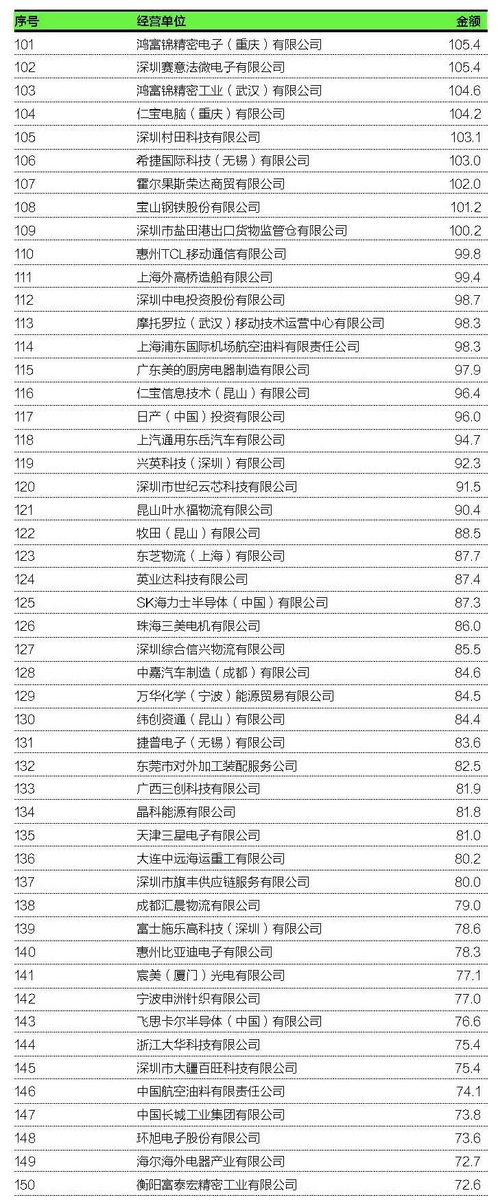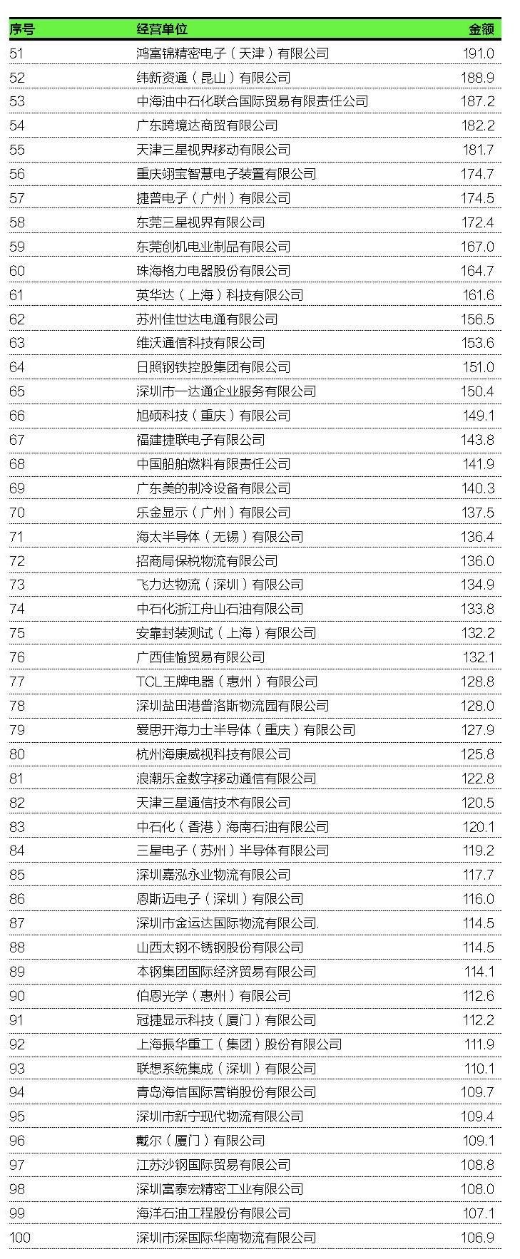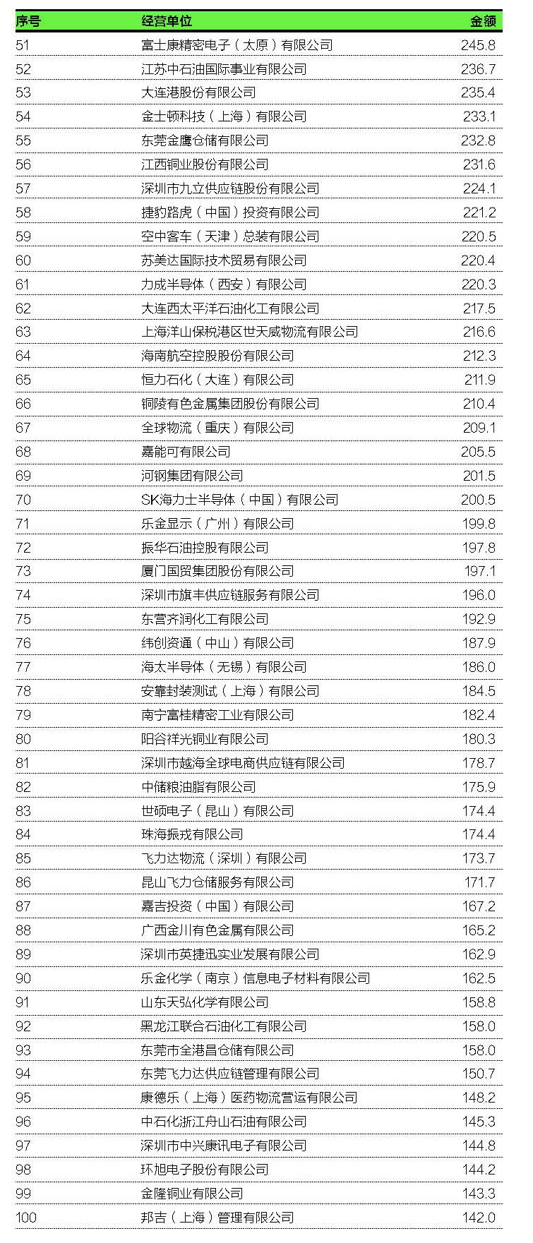 10.深圳市盐田港出口货物监管仓有限公司:100.2亿;