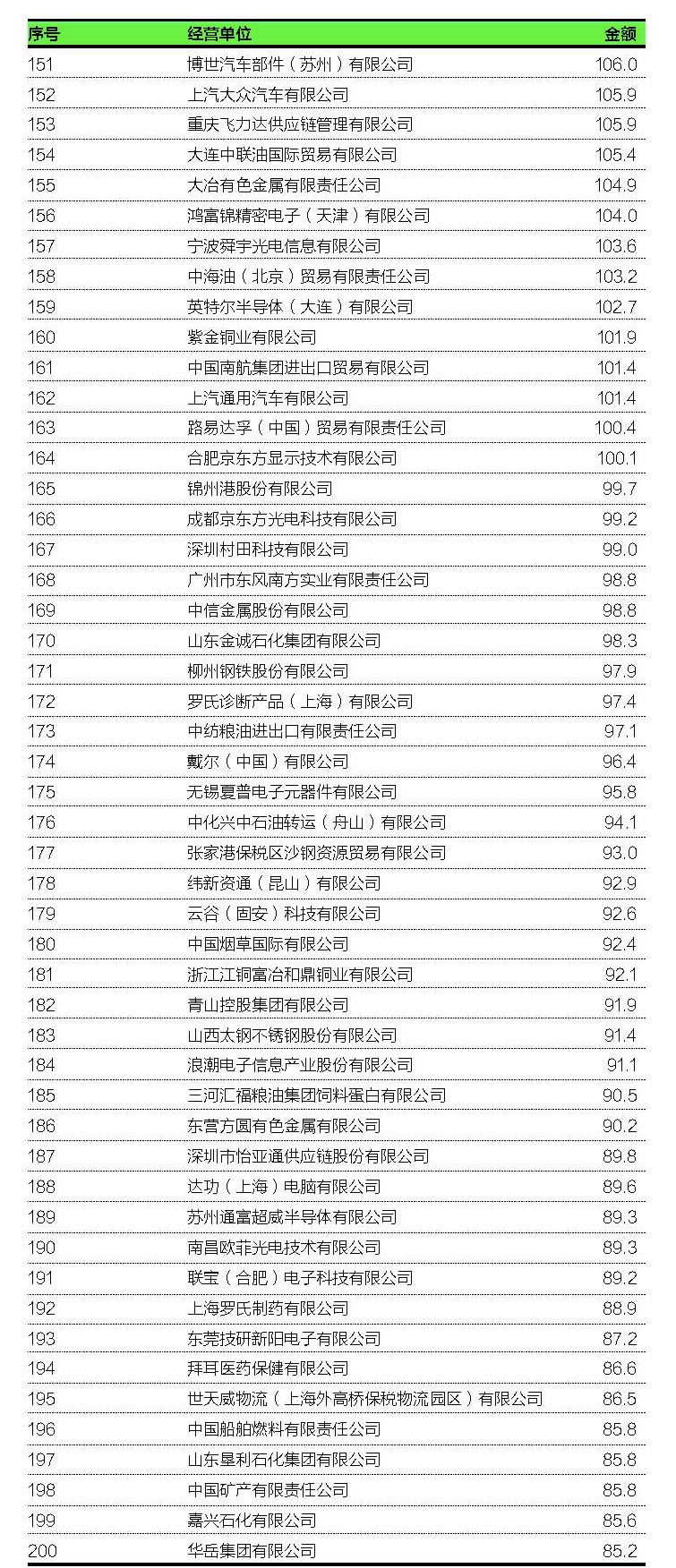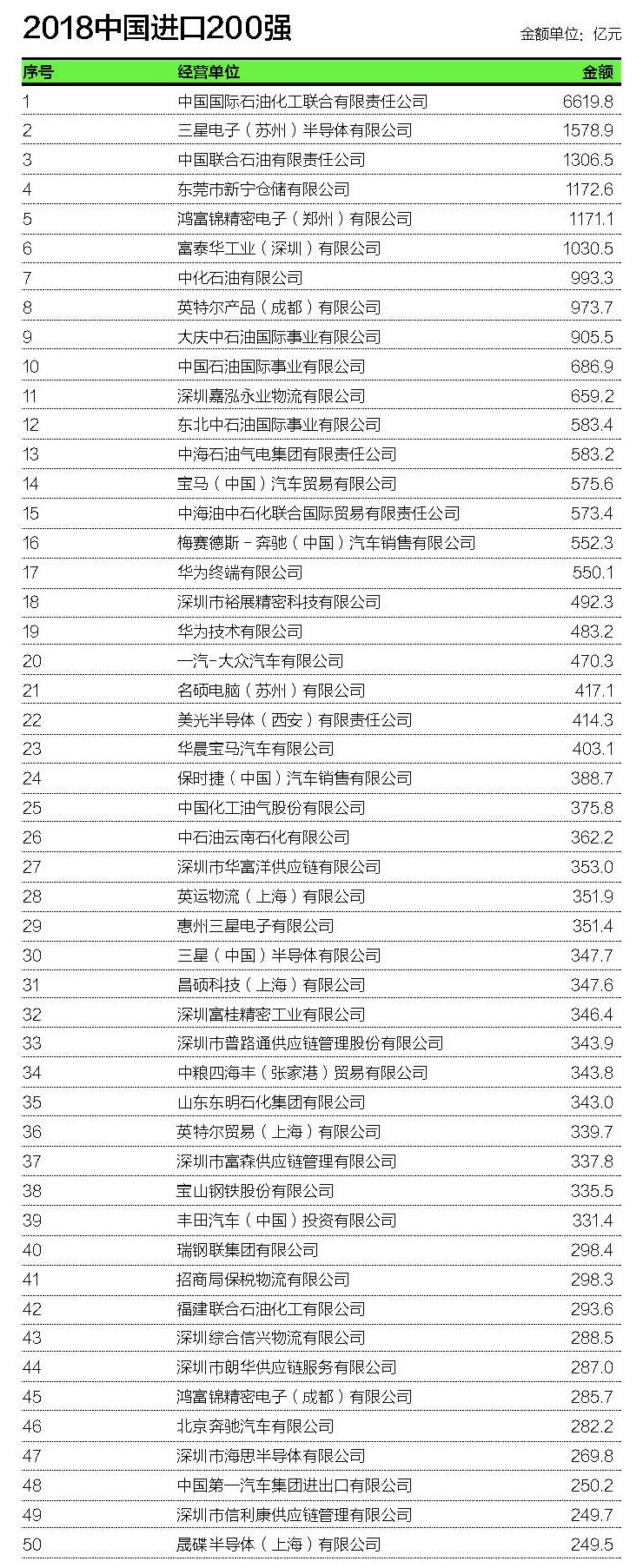 2018年中国进出口额200强榜单(含金额),深圳市物流与供应链军团拿下28席,中外运领衔出口,东方嘉盛旗下嘉泓永业物流领衔进口